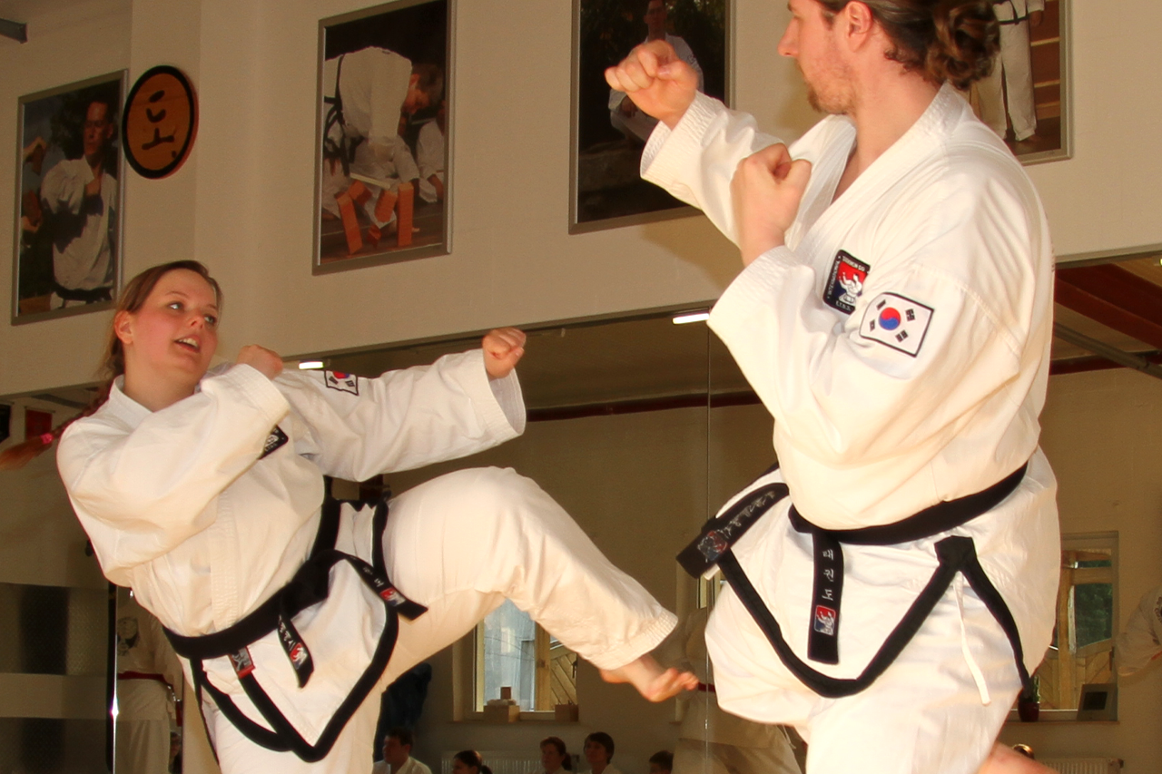Wir trainieren traditionelles Taekwon-Do. Dabei lernt man nicht nur, sich zu wehren, sondern trainiert das Gedächtnis und den Körper gleichzeitig. Alles was wir hier üben, hilft in einer Selbstverteidigungssituation weiter. Fangen Sie jetzt an!
